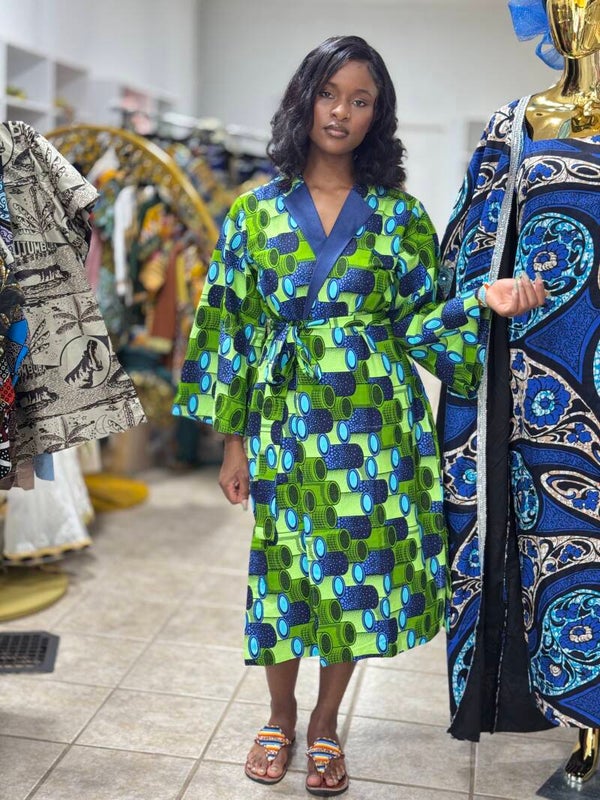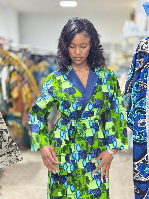 African blazer with a belt.made with 100% Congolese African print material. 100% cotton.