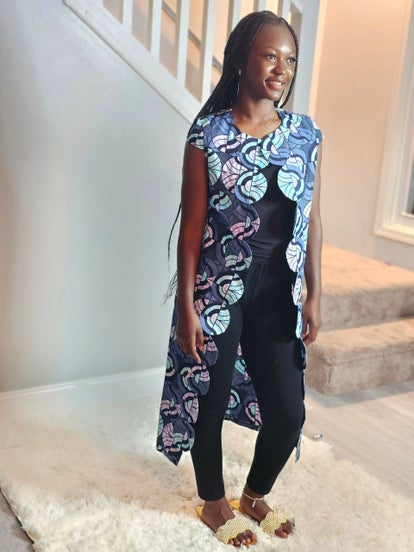 African blazer with a belt.made with 100% Congolese African print material. 100% cotton.